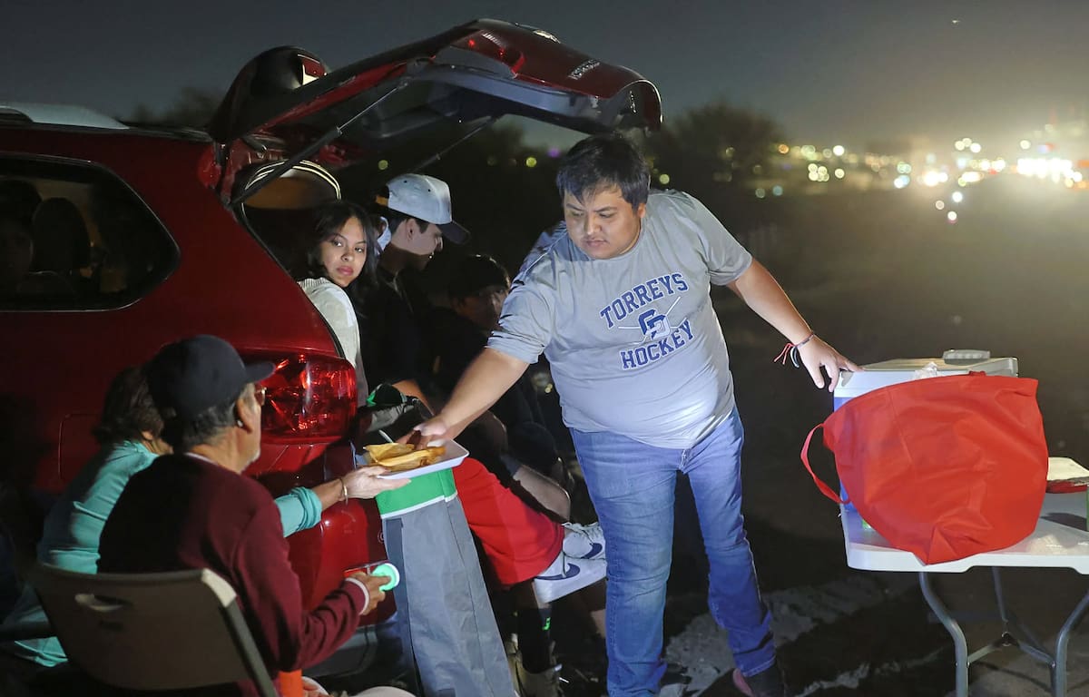 Decenas de personas caminan desde la ciudad hacia el cerrito acompañados de familia y amigos. Además algunas personas se colocaron en el camino para brindar agua, chocolate, champurrado, pan dulce, tamales y hasta hot dogs a los fieles.